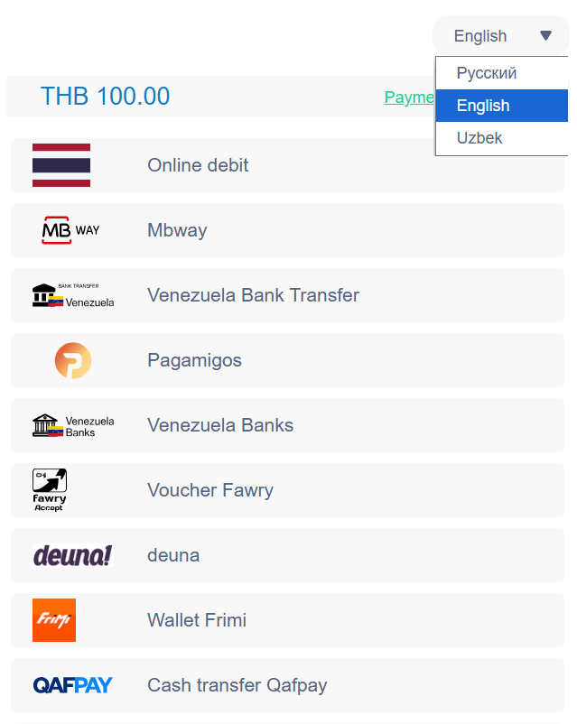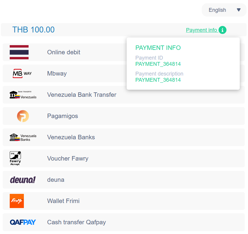 - Create the list of languages that should be available to the customers in the drop-down list and provide the list to the Monetix technical support specialists for embedding it into Payment Page. The list should always include English; any other languages can be selected from the working set at your choice.